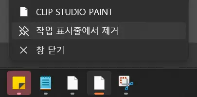 런처와 페인터 모두 손쉽게 작업 표시줄 추가를 마쳤다. 이렇게 해두면 앞으로 런처 접속 없이 바로 페인터를 실행할 수 있다. 만약 아이콘 고정이 필요없다면 아이콘에 마우스 우클릭 후 ‘작업 표시줄에서 제거’ 메뉴를 선택하면 된다.