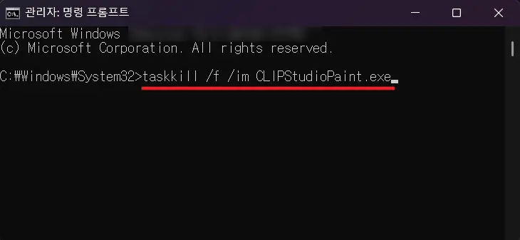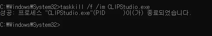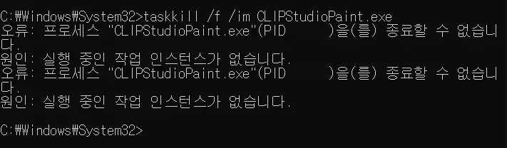 – 클립 스튜디오 페인트 : taskkill /f /im CLIPStudioPaint.exe