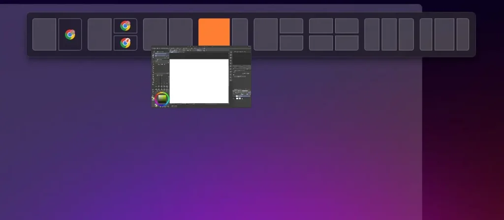 먼저 클립 스튜디오를 실행한 다음 프로그램 상단을 마우스로 잡고 모니터 화면 맨 위로 끌어보자. (화면에 꽉 찬 크기가 아닌 작은 창 상태) 윈도우 11 기준으로 위처럼 화면 분할 비율 옵션이 나올 텐데 원하는 사이즈에 클립 스튜디오를 드롭하면 된다.