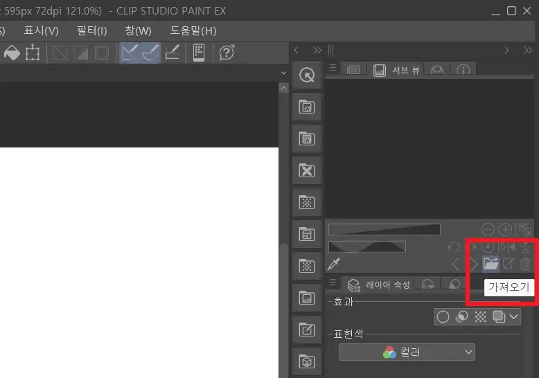 이후 영역 아래 파일 모양 아이콘이 생겼는데 클릭한 다음 컴퓨터에서 원하는 이미지를 가져오면 된다. 혹은 이미지를 서브 뷰 네모 영역 안에 직접 드래그해도 효과는 같다.