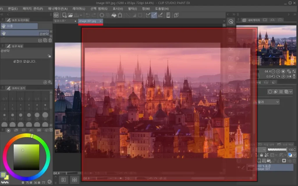 참고 이미지 탭을 마우스 왼쪽으로 잡고 움직여 보면 위처럼 빨간 이미지가 나타난다.