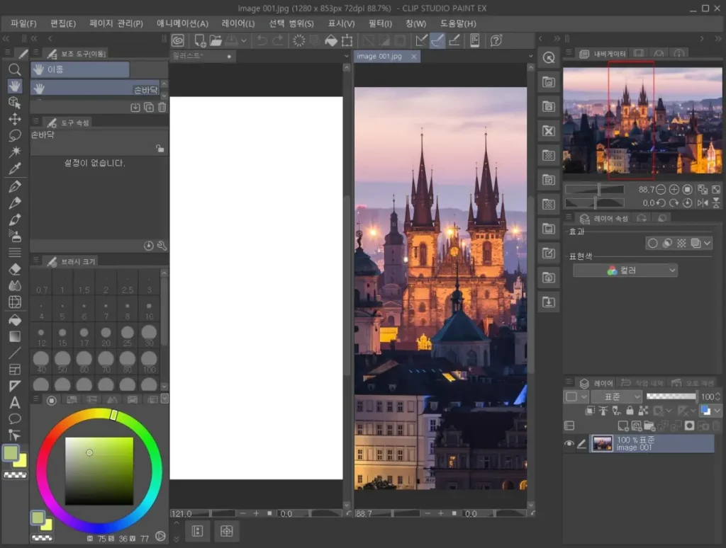 작업 파일의 네비게이터 사용이 필요하다면 아예 클립 스튜디오 화면을 둘로 나눠도 좋다.