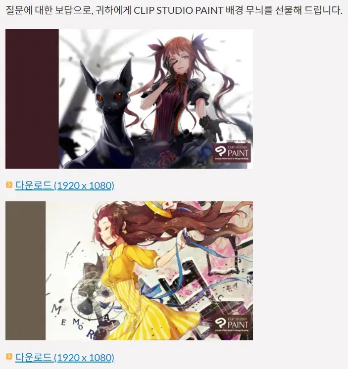 링크에 접속해 보면 1920 x 1080 월페이퍼 이미지가 두 장 있고 자유롭게 내려받을 수 있다.