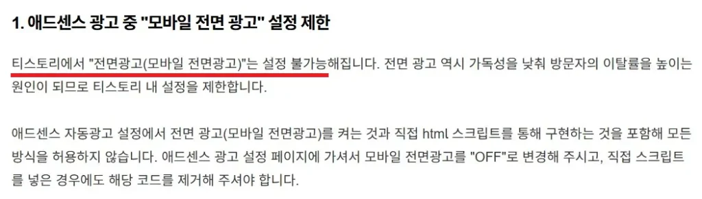 티스토리는 올해에만 유저 블로그의 애드센스 앵커, 오퍼월 광고 설정을 금지하더니 최근에는 모바일 전면 광고 금지 정책을 내놓았다.