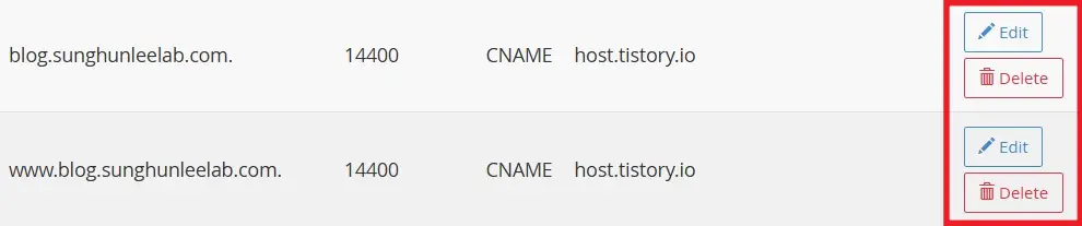 다음으로 서브 도메인의 존재를 세상에서 지우려면 이용 중인 호스팅 업체에서 설정을 해야 한다. 접근 경로는 업체마다 다르겠지만, 기본적으로 처음에 도메인을 생성했던 방법과 반대 경로로 오면 된다.
